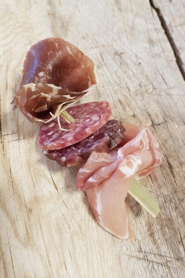 Spyd med forskjellig typer spekemat.